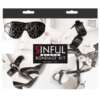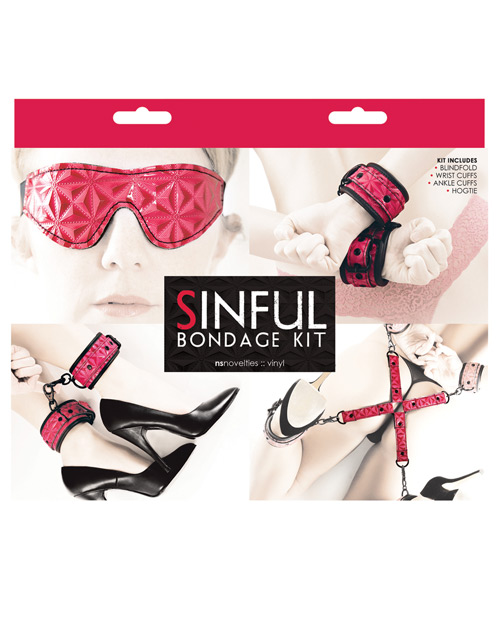 Everything needed for an evening of exhilarating BDSM fun is inside The Sinful Bondage Kit, an upscale, ready-to-go collection of exquisite restraints for both the novice and enthusiast. The kit includes wrist and ankle cuffs, hogtie, and blindfold, all even-stitched and neoprene-lined for added comfort during long play dates. All Sinful items are black anodized for durability and feature nickel-free hardware. Color: Pink. From New Sensation Novelties.