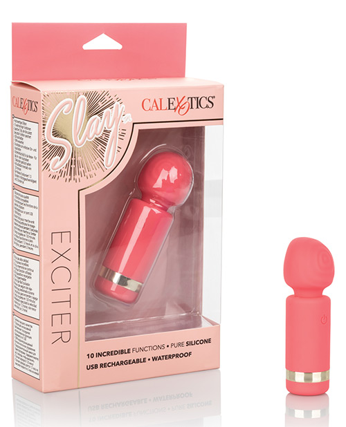 Slay all Day! Slay Exciter is an easy to operate massager with pinpoint stimulation and a flexible neck. 10 functions of intense vibraion, pulsation and escalation. Memory chip. Travel Lock, hold for 3 seconds to turn on/off. Waterproof. Material: Silicone Dimenions: 3.75 inches by 1.25 inches overall head 1.25 x 1.25 inches USB rechargeable, cord included Complete charge in 2 hours – play time of 1.5 hours on high or 2 hours on low speed.