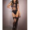 Sleek Seamless Stretch Net Halter Lace Bodystocking Black O/S