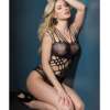 Halter lace bodystocking. Crotchless .Faux lace up front. Seamless Stretch Net. G-string not included Color: Black One size. Weight: 120lb – 150lb. Bust: 36in. – 38in. Waist: 28in. – 30in. Hip: 38in. – 40in. Cup: B. Dress: 6-12.
