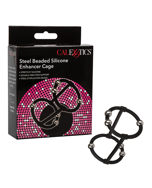 Made to enhance, escalate and intensify ecstasy every time you slip on the Steel Beaded Silicone Enhancer Cage. The sturdy, yet stretchy silicone dual enhancer cage supports, while the moveable steel pleasure beads thrill you and your lover.