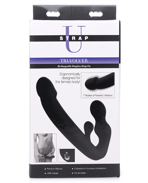 Strap U Tri-Volver 7x Vibrating Strapless Strap on – Black