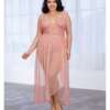 Stretch Satin Robe w/Eyelash Lace Sleeve Merlot OS/XL