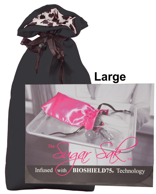 A sexy designer toy bag that will keep your bedroom accessories bacteria free! The 7″ x 12″ Sugar Sak provides you with the protection of Bioshield 75. This invisible coating utilizes exclusive EPA approved patented technology with bioshield seal provides a barrier that inhibits the growth of bacteria, fungi, yeast, mold, mildew and viruses in the bag. Bag up some fun… the safe and clean way!