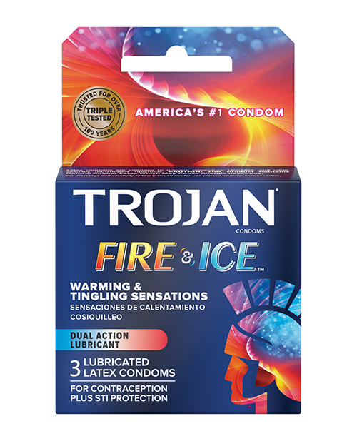 Trojan condoms have been trusted for over 90 years. Trojan brand condoms are made from premium quality latex to help reduce the risk of unwanted pregnancy and sexually transmitted diseases. Each condom is electronically tested to help ensure reliability. Experience thrilling sensation of pleasure with Trojan Fire & Ice condoms specially designed for more passion and excitement. Trojan Fire & Ice dual action lubricant, warming and tingling mix on both sides of the condom create sensations for both partners.