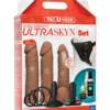 The Vac-U-Lock(TM) Dual Density Starter Set provides a fun and innovative introduction to strap-on sex with a complete harness with removable o-rings and plug, three moderately-sized ULTRASKYN(TM) attachments and a bottle of Mood water-based lube. These dual density attachments warm to body temperature with use and feature a soft, pliable exterior that gives way to a firm inner core, recreating the feel of a real erect penis. Begin your exploration with the pleasing ridges and plush balls of the 5.5 inch textured cock, or go a bit deeper with the 6 inch spiral dong. For the strongest and most lifelike sensation, choose the 7 inch thin dong’s realistic proportions, contours, and vein details. Attachments can be used with the harness, the included Vac-U-Lock(TM) suction cup, and any other accessory or harness in the line. The Vac-U-Lock(TM) Dual Density Starter Set also includes Doc Johnson(R) Natural Toy Cleaner and ULTRASKYN(TM) Refresh Powder to properly and hygienically maintain your dual density ULTRASKYN(TM) attachments. Every product in the patented Vac-U-Lock(TM) system is designed to help you create any strap-on or toy you’re in the mood for, and it’s as simple as popping on the attachment of your choice. Adjustable Unisex Harness fits Up to 69 In. (175cm) Waist. Material: TPE/ PP Total Length 7″ Thin Dong: 7.5 in. (19.1 cm) – 6″ Spiral Dong: 6 in. (15.2 cm) – 5.5″ Textured Cock: 5.5 in. (14 cm) Insertable/Usable Length 7″ Thin Dong: 7.5 in. (19.1 cm) – 6″ Spiral Dong: 6 in. (15.2 cm) – 5.5″ Textured Cock: 4.5 in. (11.4 cm) Width/Diameter 7″ Thin Dong: 1.5 in. (3.8 cm) – 6″ Spiral Dong: 1.5 in. (3.8 cm) – 5.5″ Textured Cock: 1.5 in. (3.8 cm) Circumference 7″ Thin Dong: 5 in. (12.7 cm) – 6″ Spiral Dong: 4.75 in. (12.1 cm) – 5.5″ Textured Cock: 5 in. (12.7 cm)