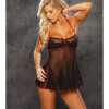 Valentines Sheer Babydoll w/Embroidered Hearts Black/Red SM