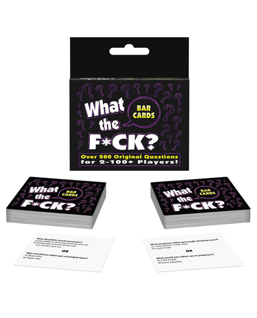 WTF? The What the Fuck? Bar Card game has two kinds of questions – Raunchy Questions and Totally Fucked Up Questions. Over 200 original questions for 2-100 players! Any questions? English.